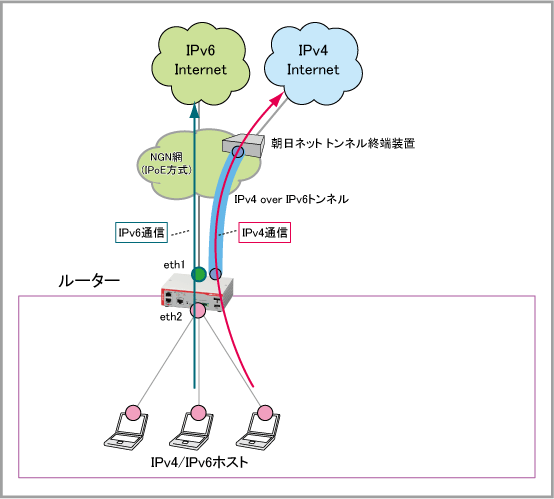 Note(注1) 本設定例では例示用IPアドレス等を使用しており,実際に設定する値とは異なります。実際の設定時には,ユーザー毎に朝日ネットから通知される各種情報をご使用ください。