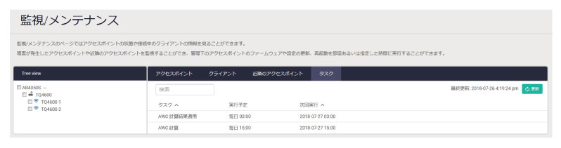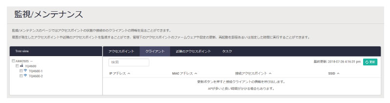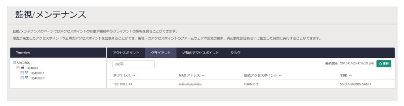 Note無線クライアント情報を表示させるには「表示」ボタンを押してください。なお、本ページで表示される情報は管理下アクセスポイントから以下の間隔で送られてきます。
