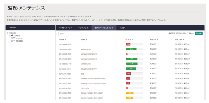 Note近隣アクセスポイントの情報を表示させるには「表示」ボタンを押してください。なお、本ページで表示されるのは管理下アクセスポイントから30分間隔で送られてくる情報です。