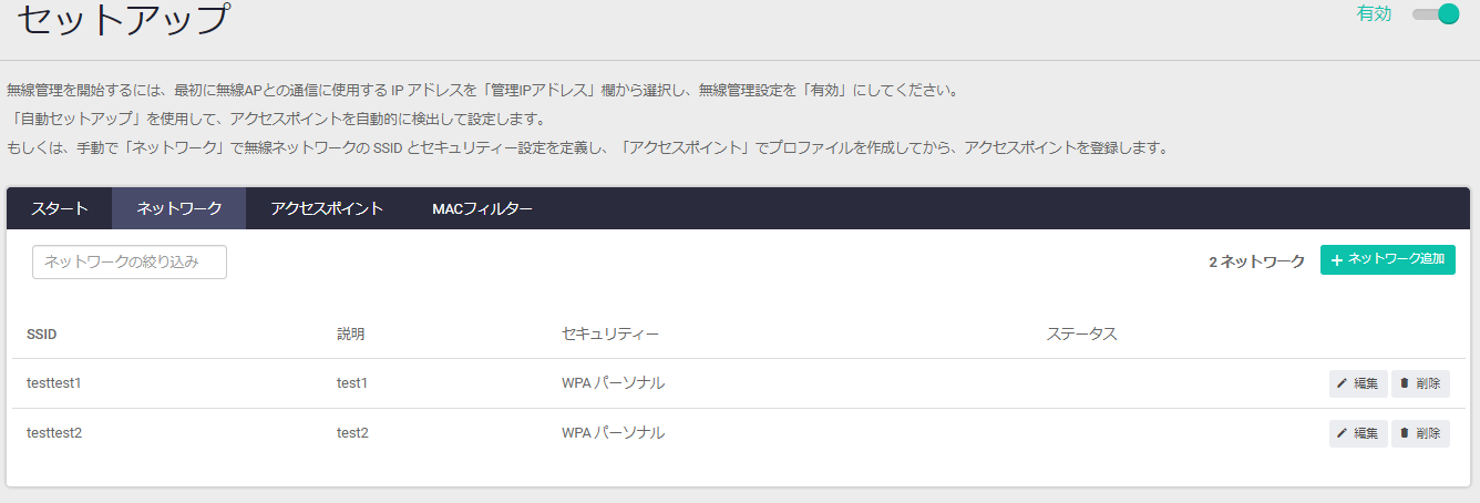 NoteCSVファイルをアップロードするごとにMACフィルターリストが作成されます。また、CSVファイル名がリスト名になります。