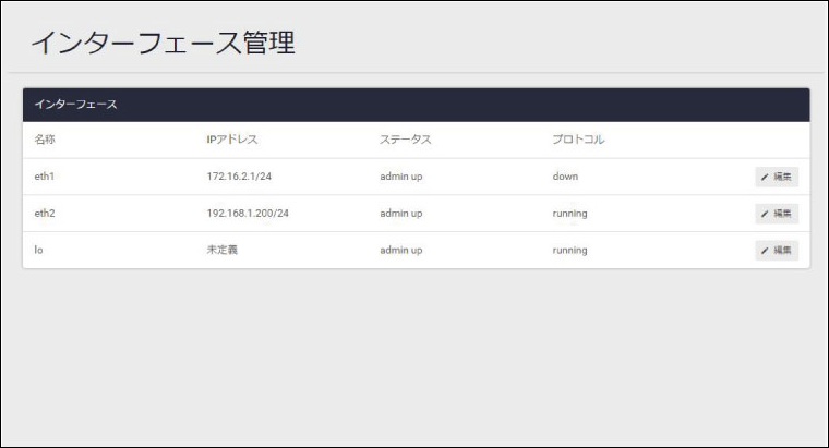 IPアドレス | インターフェースに設定されているIPv4アドレスの一覧が表示されます。セカンダリーIPアドレスは「(セカンダリ-)」という文字列付きで表示されます |