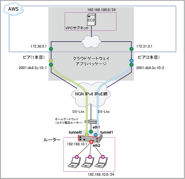 - DS-Liteトンネルを経由してAWS VPC内のネットワークと通信します。