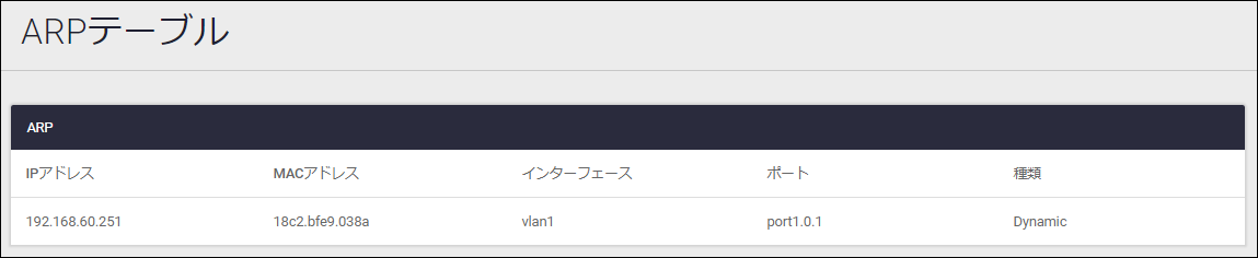 | ポート | MACアドレスの存在するポート番号が表示されます |