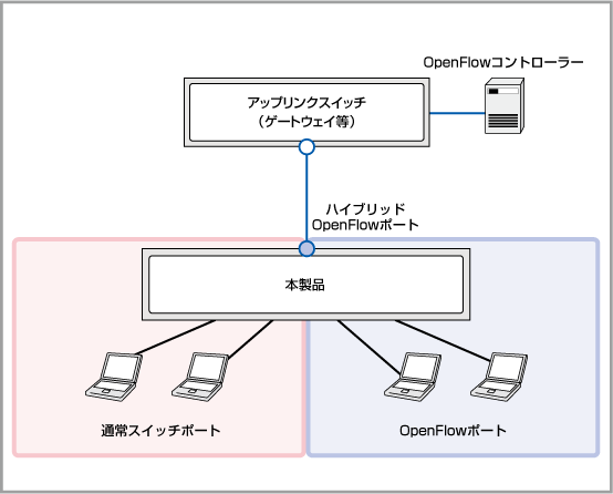 | ハイブリッドOpenFlowポート | タグ付き | データプレーン、従来通信共通のアップリンクとして使用 コントローラー接続にも使用可能 |