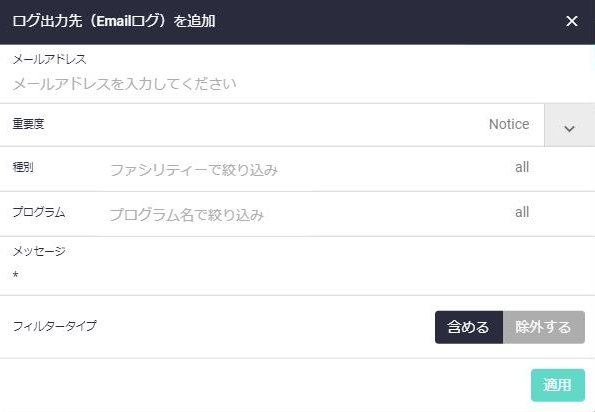 | 適用ボタン | 入力または選択したパラメーターをランニングコンフィグに反映して表示画面に戻ります。 未入力のパラメーターは薄い色で表示されている現在値のまま変更されません。 また、本ダイアログで変更した内容は、設定を保存して再起動するまで実際の動作には反映されません |