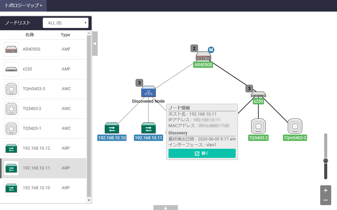 | AMF SNMP | SNMP探索機能で検出されたARPノードを表示 |