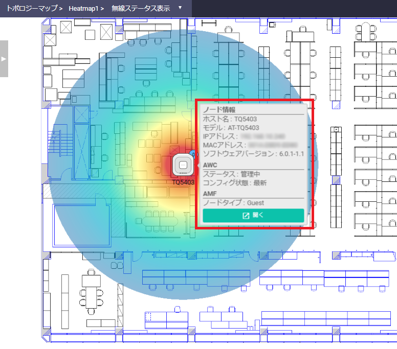 Note無線LANコントローラー機能の管理下にないAPであっても、AMFゲストノードとして認識されている場合はノードリストに表示されますが、管理下にないAPをヒートマップに配置することはサポート対象外です。