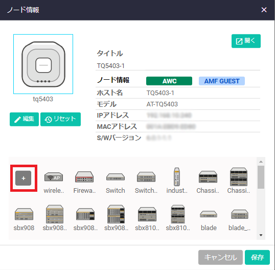 Note該当ノードがAMFゲストノードかつ無線LANコントローラーで管理されている場合、ノードリストの種類(Type)にはAWCと表示されます。