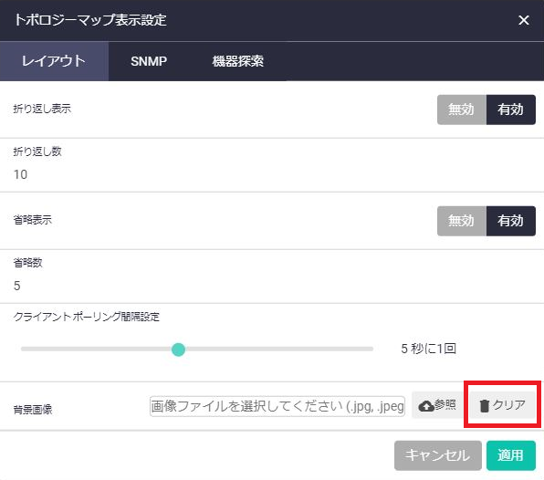 NoteSNMP探索機能を有効にした際に、/24以上の狭いサブネットが設定されているネットワークに対し、自動探索が動作します。そのため、事前に拒否設定を行ってください。