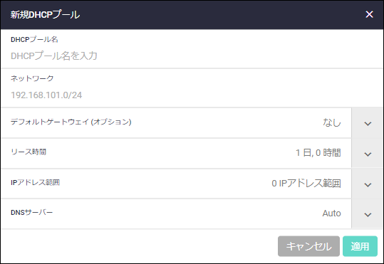 | 適用ボタン | 新規DHCPプールを追加して一覧画面に戻ります |