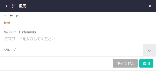 | グループ | ユーザーの所属先ユーザーグループを選択してください |