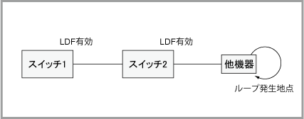 アクション遅延時間の設定は、複数のスイッチでLDF検出を使用している環境において、ループ発生箇所にもっとも近いスイッチでのみアクションを実行させたい場合に有効。
