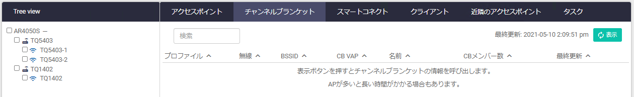 Noteチャンネルブランケット情報を表示させるには「表示」ボタンを押してください。なお、本ページで表示される情報はチャンネルブランケットに所属しているAPから30分間隔で送られてくる情報です。