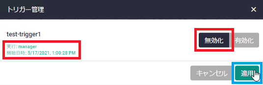 | 適用ボタン | 本ダイアログで変更した設定内容を保存・適用して一覧画面に戻ります |