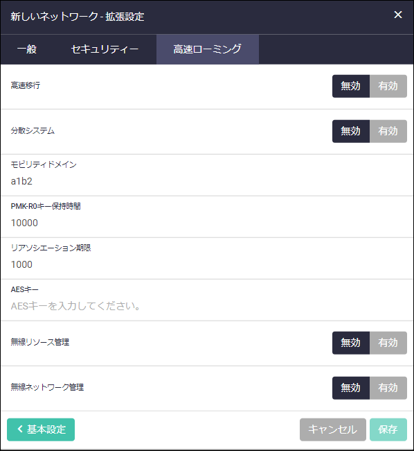 | AESキー | AP間でPMK-R1をやり取りするときの暗号化に用いるAESキーを設定 |