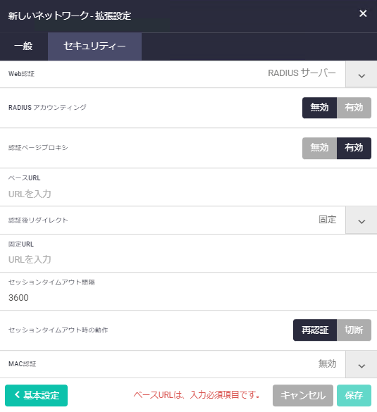 | MAC認証 | MAC認証の有効/無効を設定 |