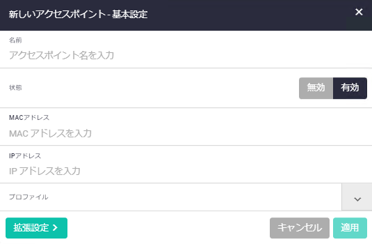 | 名前 | 無線LANコントローラーの管理下に登録するアクセスポイント名を指定 |