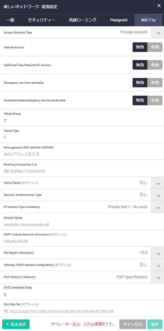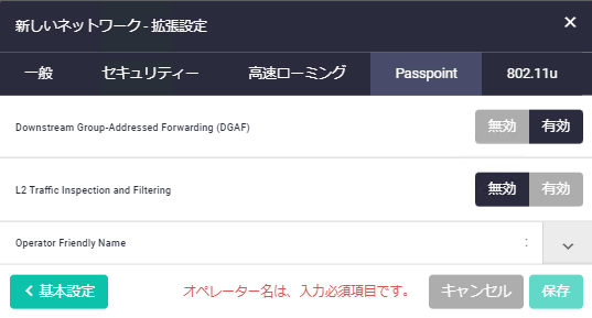 NotePasspointを有効にすることで「Passpointタブ」と「802.11uタブ」が表示されます。