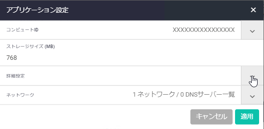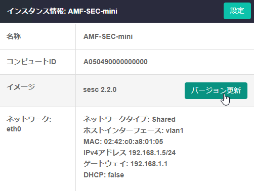 | ネットワーク | インスタンスのネットワークインターフェース名が表示されます。これはインスタンスが認識している仮想インターフェースの名前であり、本製品のインターフェース名と直接の関係はありません |