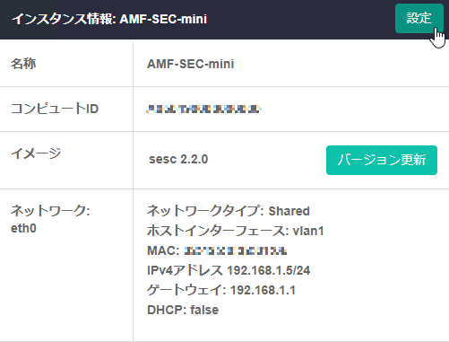 | 設定ボタン | インスタンスの設定(バージョン以外)を変更したいときは、インスタンスを停止してからこのボタンをクリックしてください |