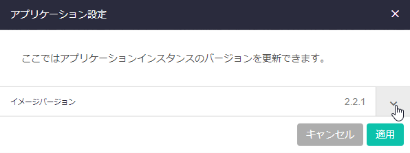 | バージョン更新ボタン | アプリケーションイメージのバージョンを変更したいときは、インスタンスを停止してからこのボタンをクリックしてください |
