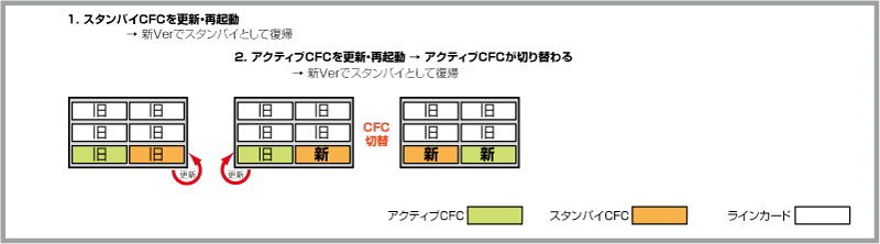 CFCのバージョンアップ完了後は、都合のよい時間帯にラインカードを再起動してください。