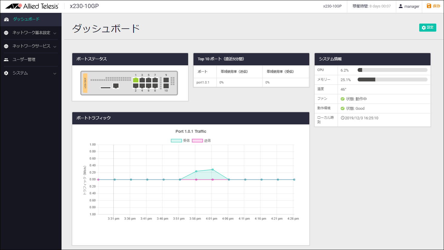 - ログイン画面が表示されますので、デフォルトのユーザー名 manager、パスワード friend でログインします。