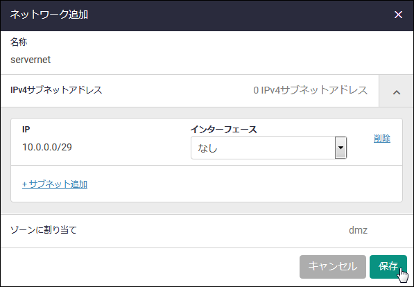 | ゾーンに割り当て | 該当ネットワークの追加先ゾーンが表示されます |