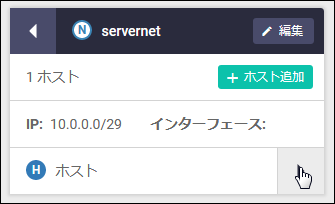| (N) servernet Xホスト ▶ | ゾーンに所属するネットワークの名前(例ではservername)と該当ネットワークに所属するホストの数(X)が表示されます。右向き三角をクリックすると、該当ネットワークの情報に表示が切り替わります。 |