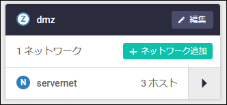 | ◀ (N) servernet(例) | ネットワークの名前が表示されます。左向き三角をクリックすると、該当ネットワークが所属しているゾーンの情報に表示が切り替わります |