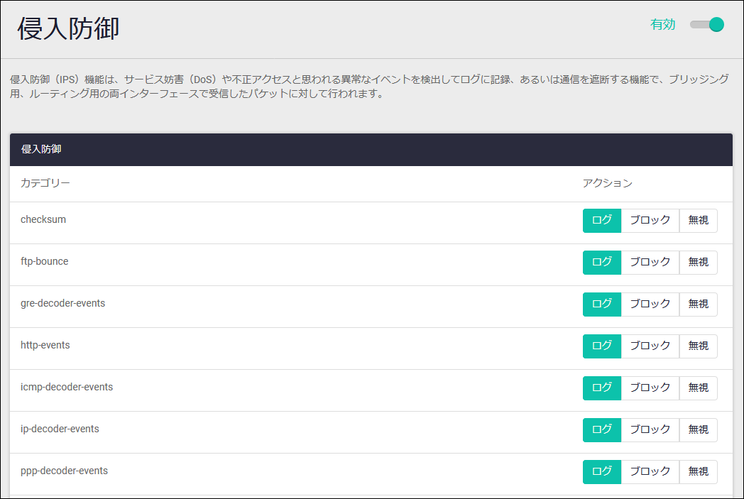 | ∧ | ゾーン、ネットワーク、ホスト項目右側の上向き矢印をクリックすると、該当項目が折りたたまれ、該当項目の内容や下位項目が表示されなくなります |