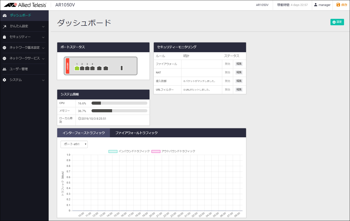 これらの自動設定はランニングコンフィグに対してのみ行われますが、Web GUIへのログイン後にナビゲーションバーの「保存」ボタン等で設定を保存した場合は、これら自動設定の内容も設定ファイルに書き込まれますので、必要に応じて設定内容を確認し、不要な設定の削除や設定変更を行ってください。Web GUIでは「システム」>「CLI」メニューから仮想コンソールを開くことで、CLIによる設定の確認や変更が可能です。