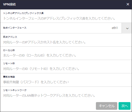 | 対向ルーターのLAN側ネットワークアドレスを「192.168.60.0/24」の形式で入力してください |
