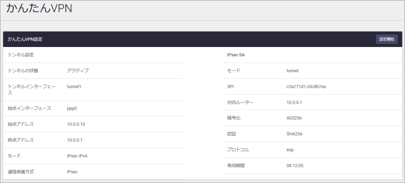 Note「かんたんVPN」画面での表示や設定はtunnel1インターフェースに対して行われます。