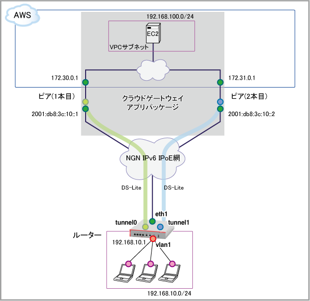 | AmazonルータのピアIP(1本目) | 172.30.0.1/24 |