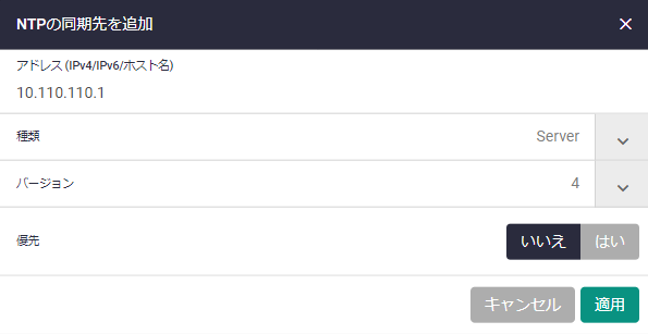 Noteすでにインターネット接続が設定済みの状態で「適用」をクリックすると、ランニングコンフィグ上の既存設定が消去され、新たに設定した内容で置き換えられます。