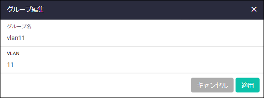 - グループ名、VLANは省略できません。