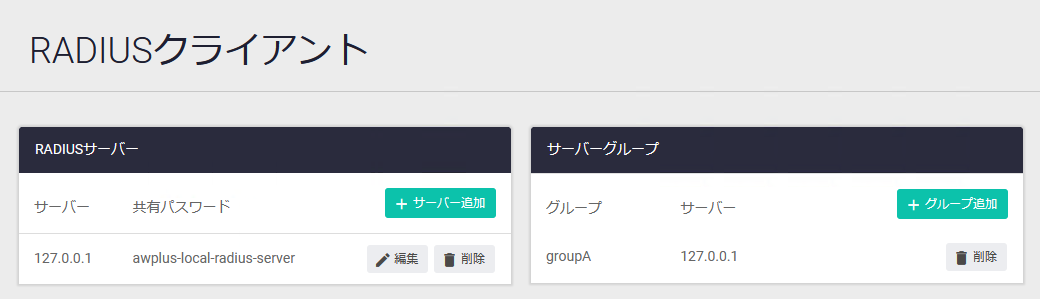 | RADIUSサーバーに登録されているユーザーグループの一覧が表示されます | |