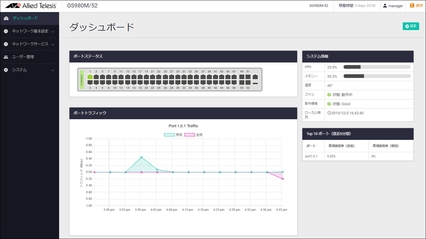 - ログイン画面が表示されますので、デフォルトのユーザー名 manager、パスワード friend でログインします。