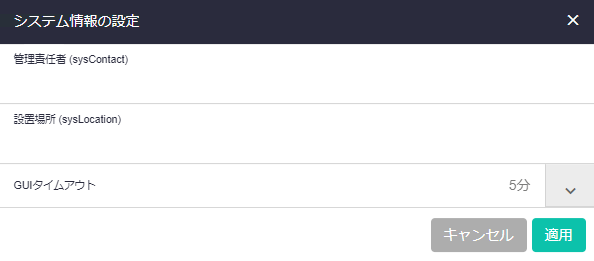 | 管理責任者 (sysContact) | 管理責任者(連絡先)を入力してください。 この値は「SNMP設定」の「全体設定」画面からも編集可能です |