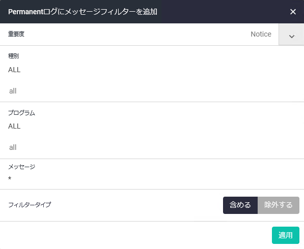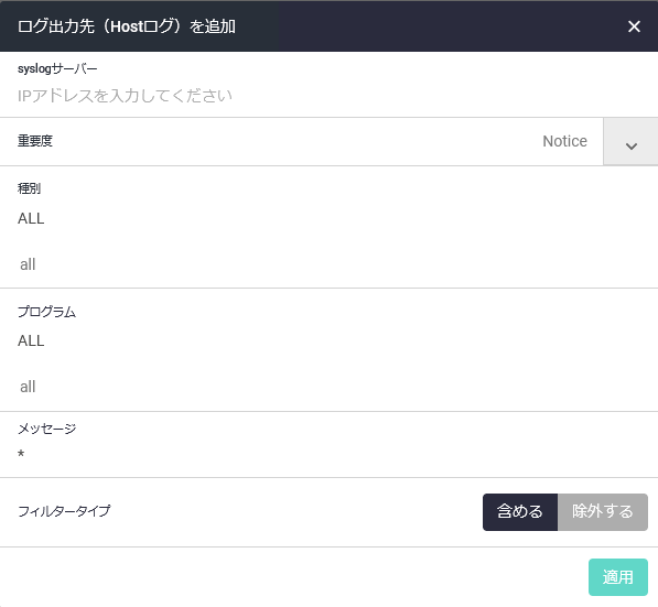 | 適用 | 設定を保存・適用して一覧画面に戻ります |