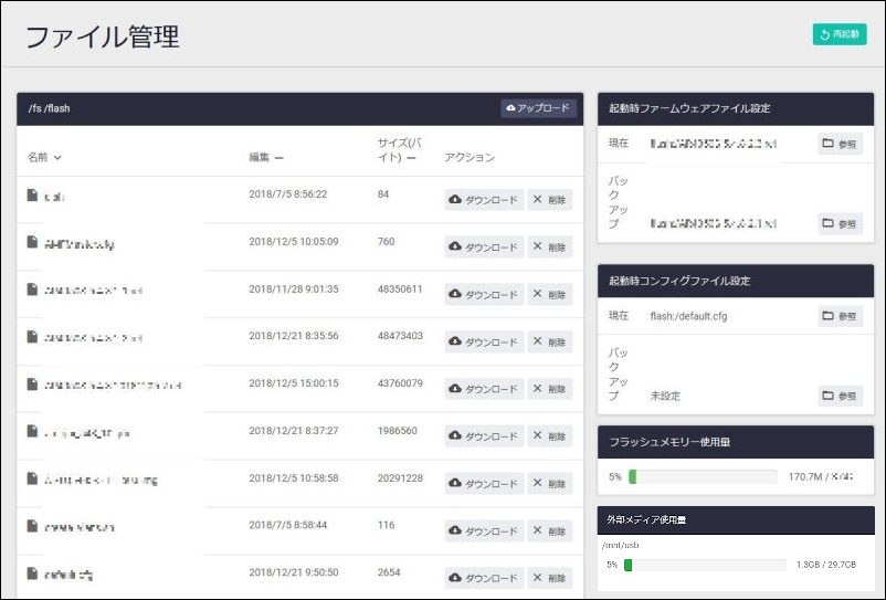 | ファームウェアファイル | 現在使用中のファームウェアイメージファイルが表示されます |