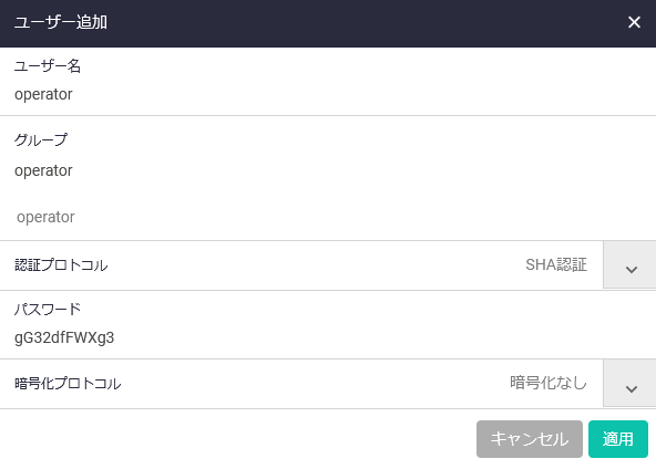 | 適用ボタン | ユーザーを追加して一覧画面に戻ります |