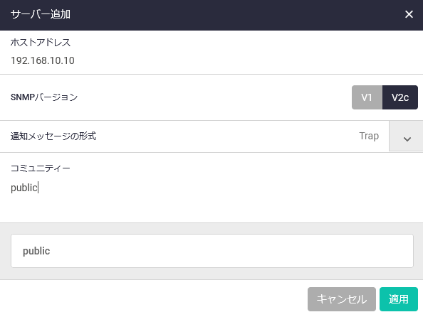 | 適用ボタン | トラップホストを追加して一覧画面に戻ります |