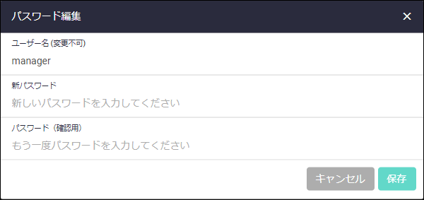 | パスワード編集ボタン | ユーザーのパスワードを変更するためのパスワード編集ダイアログが開きます |