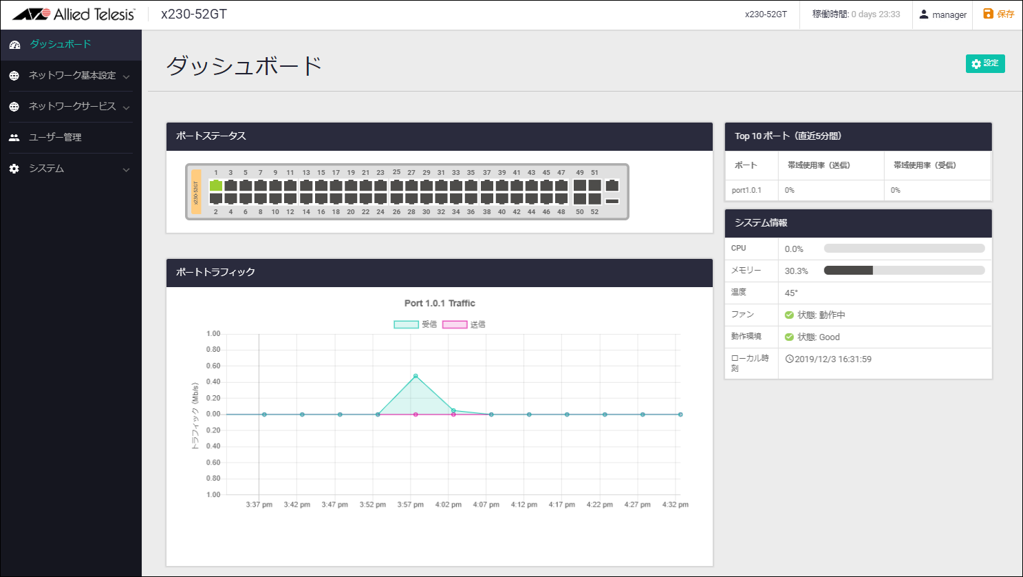 - ログイン画面が表示されますので、デフォルトのユーザー名 manager、パスワード friend でログインします。