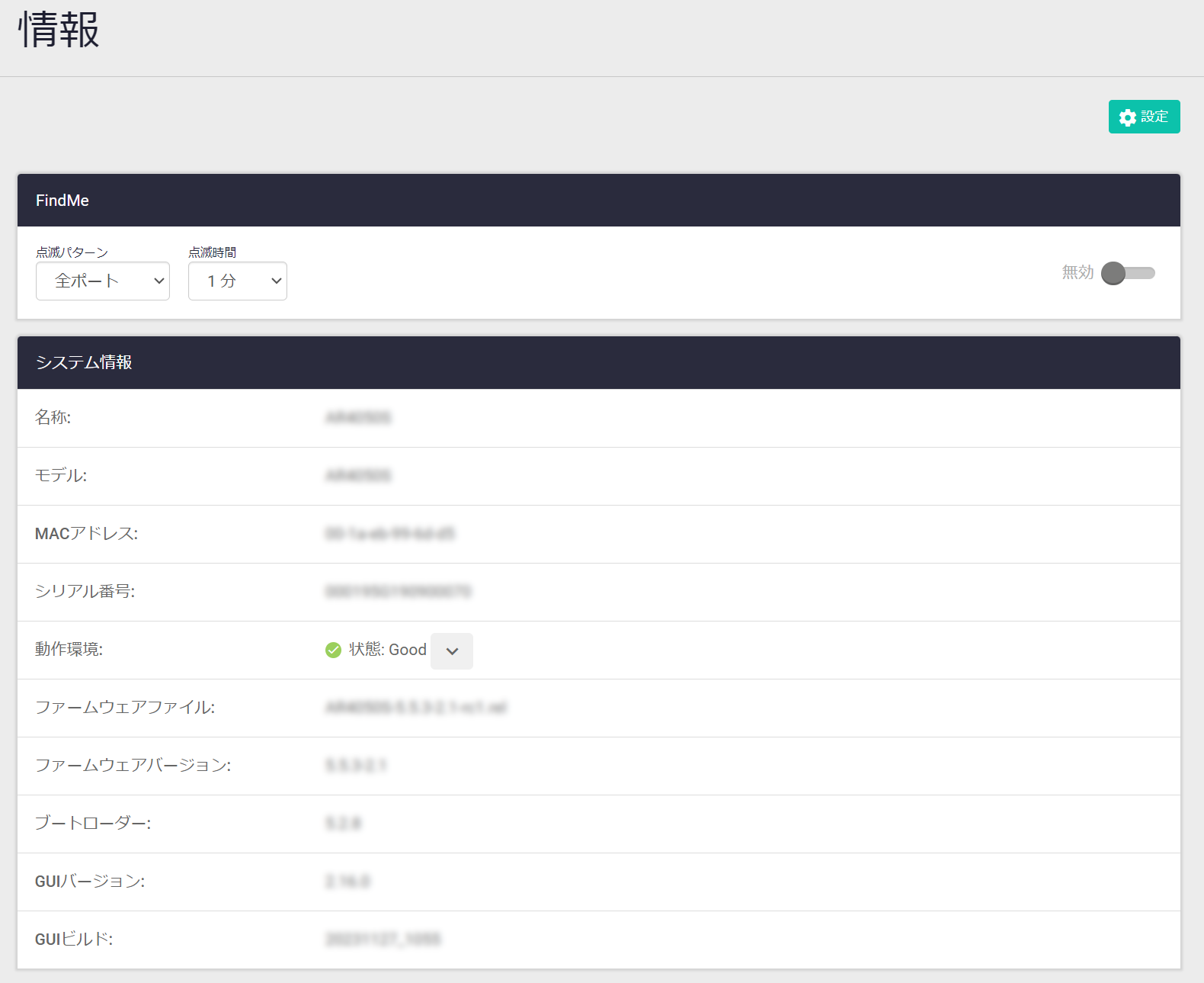 | ファームウェアバージョン | 現在使用中のファームウェアバージョンが表示されます |