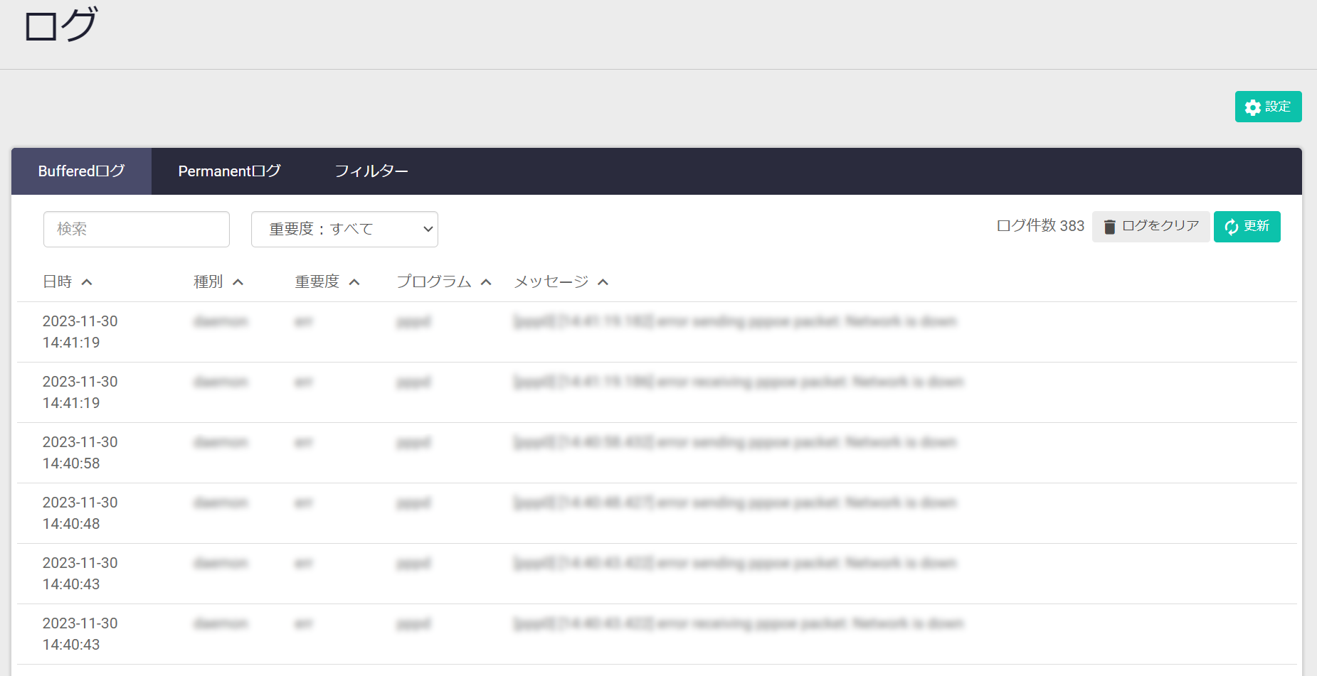 | フィルター | ローカルログやリモートログに対してメッセージフィルターの設定ができます |