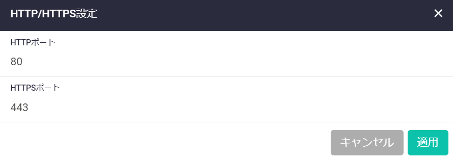 | 設定ボタン | HTTP/HTTPSポートの設定を変更します |