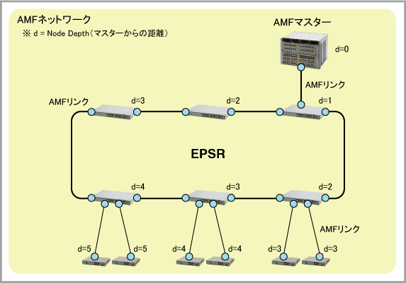 これにより、リングを構成するノードはすべて同一階層となり、AMFネットワーク全体の階層レベルが浅くなります。